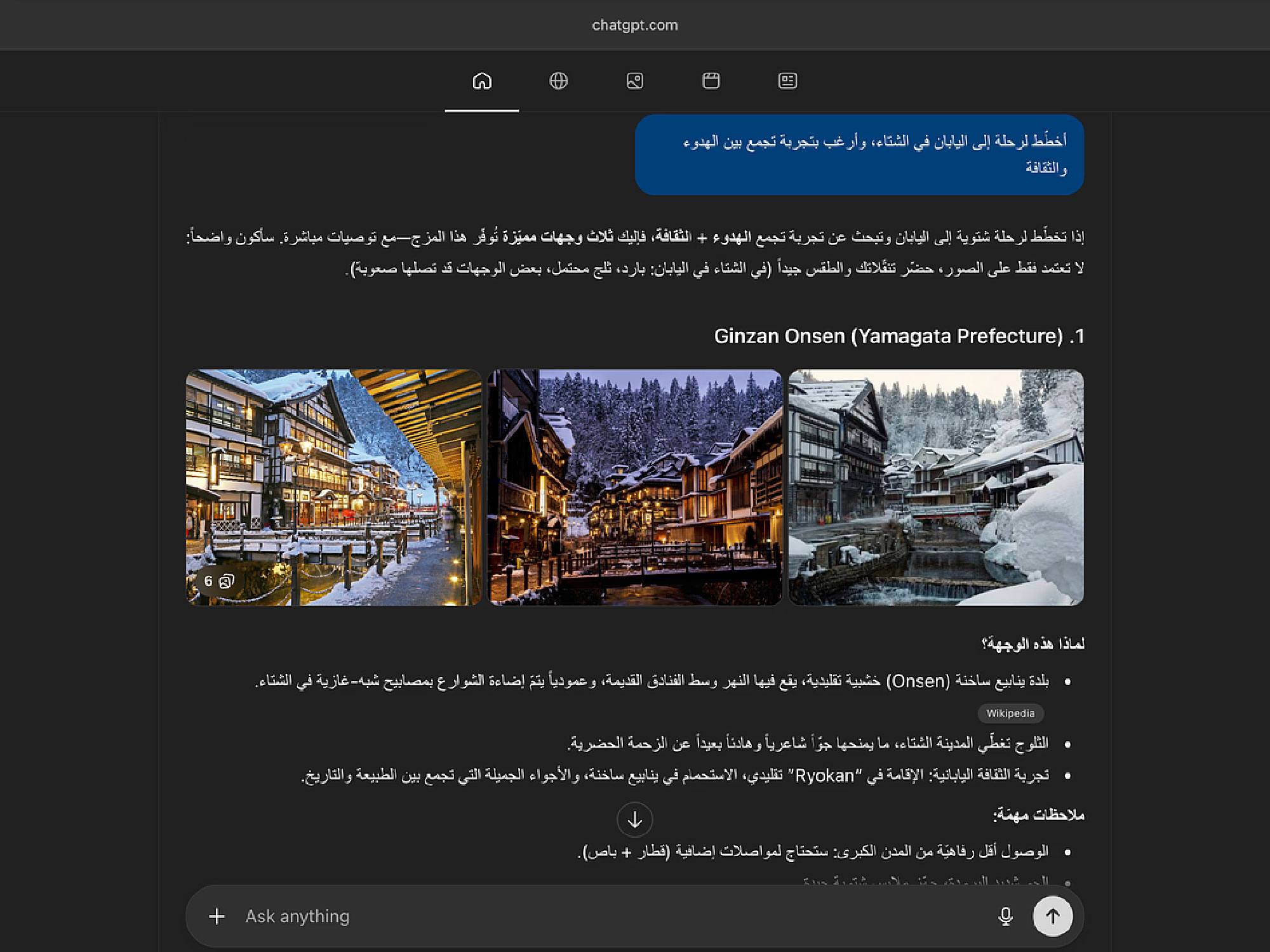فعوضًا عن صياغة طلب تقليدي، مثل:«أفضل أماكن السياحة في اليابان»، يمكنك أن تقول له :