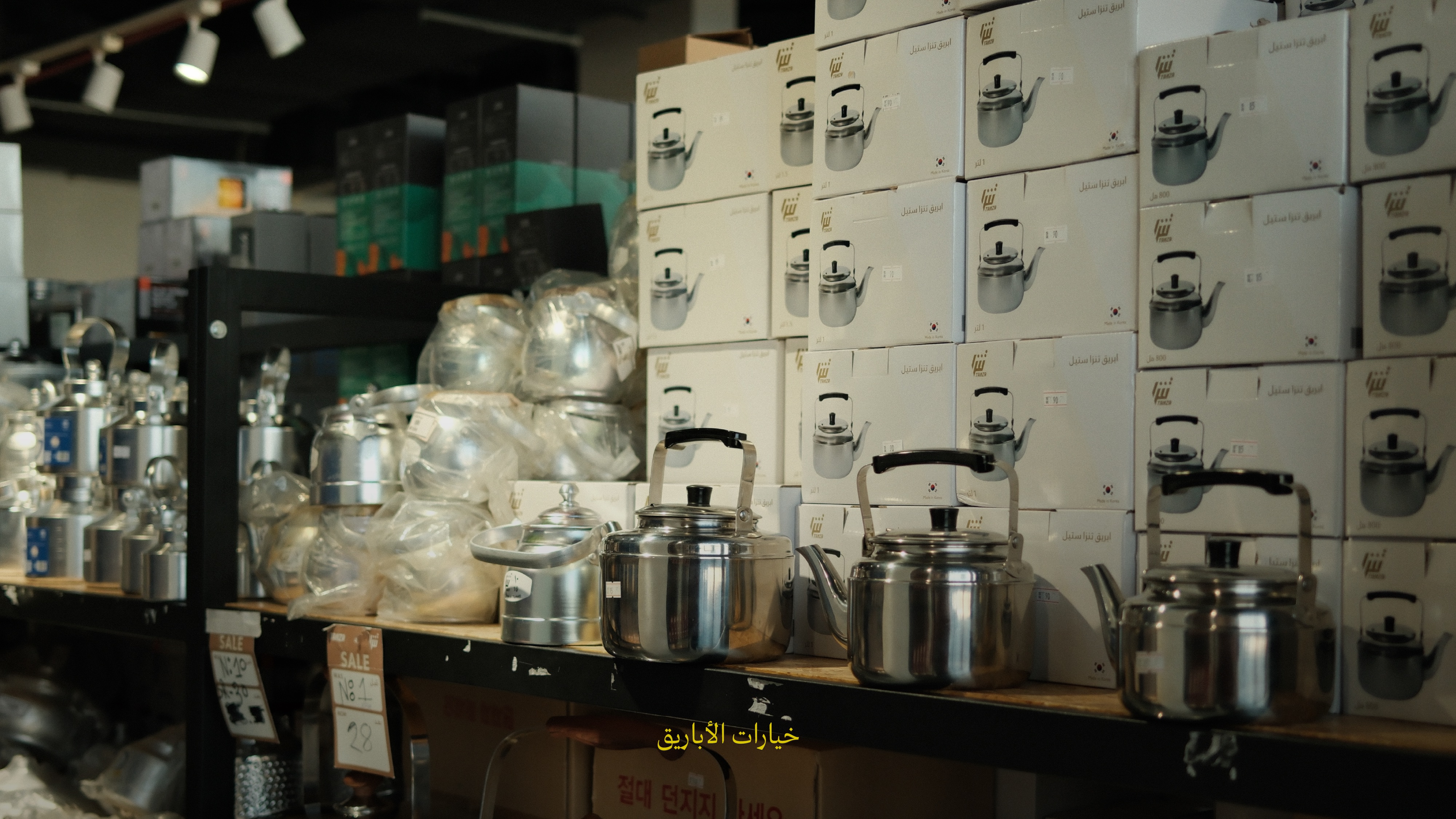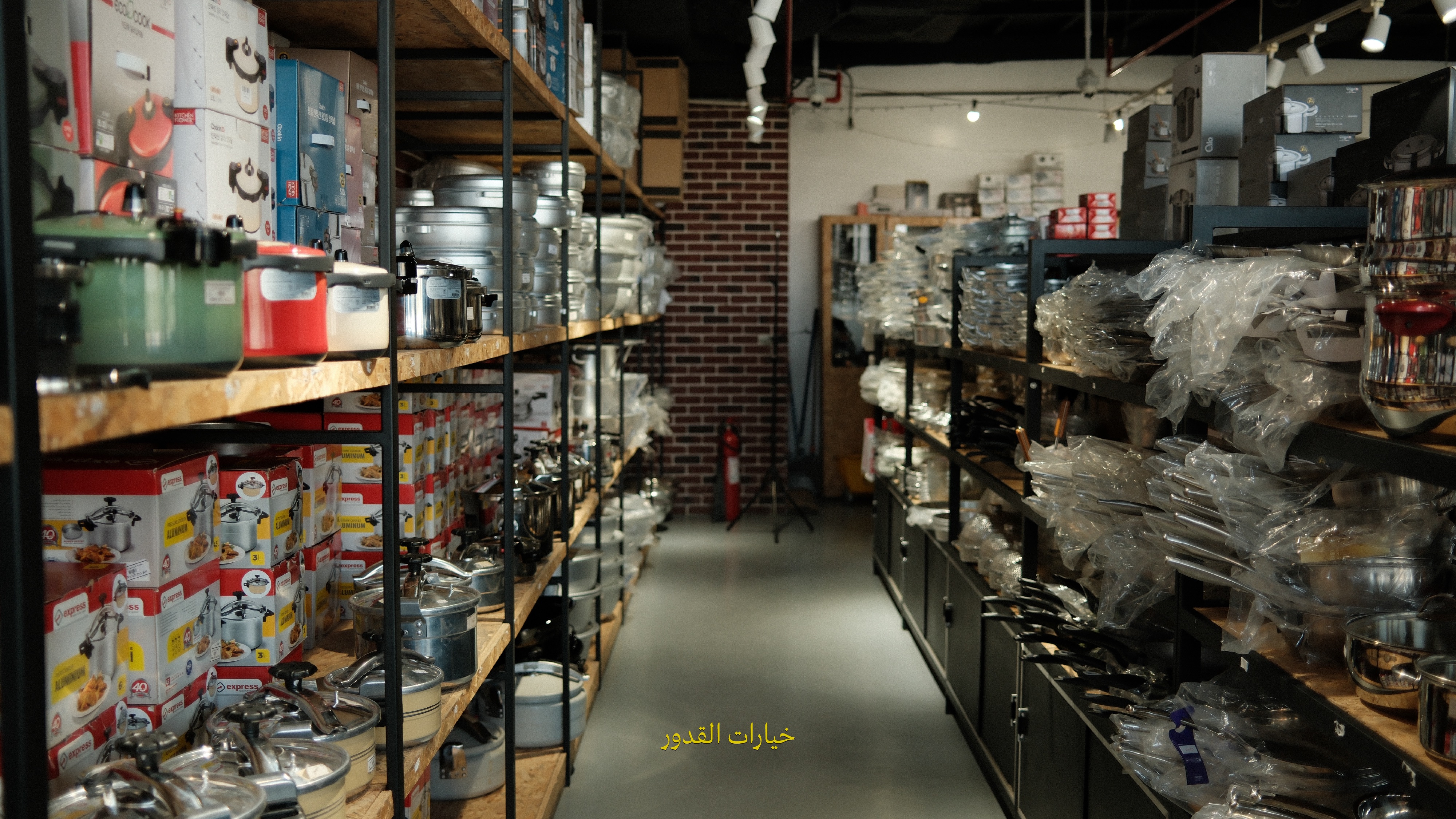 أول قسم من يسارك بعد جهة المدات والمراكي، هو للقدور والثلاجات الكهربائية وأفران البيتزا. وبعدها تجيك الأباريق وكاسات الشاهي الفرنسية الجيدة، وأنواع متعدّدة من الشواهي.🫖