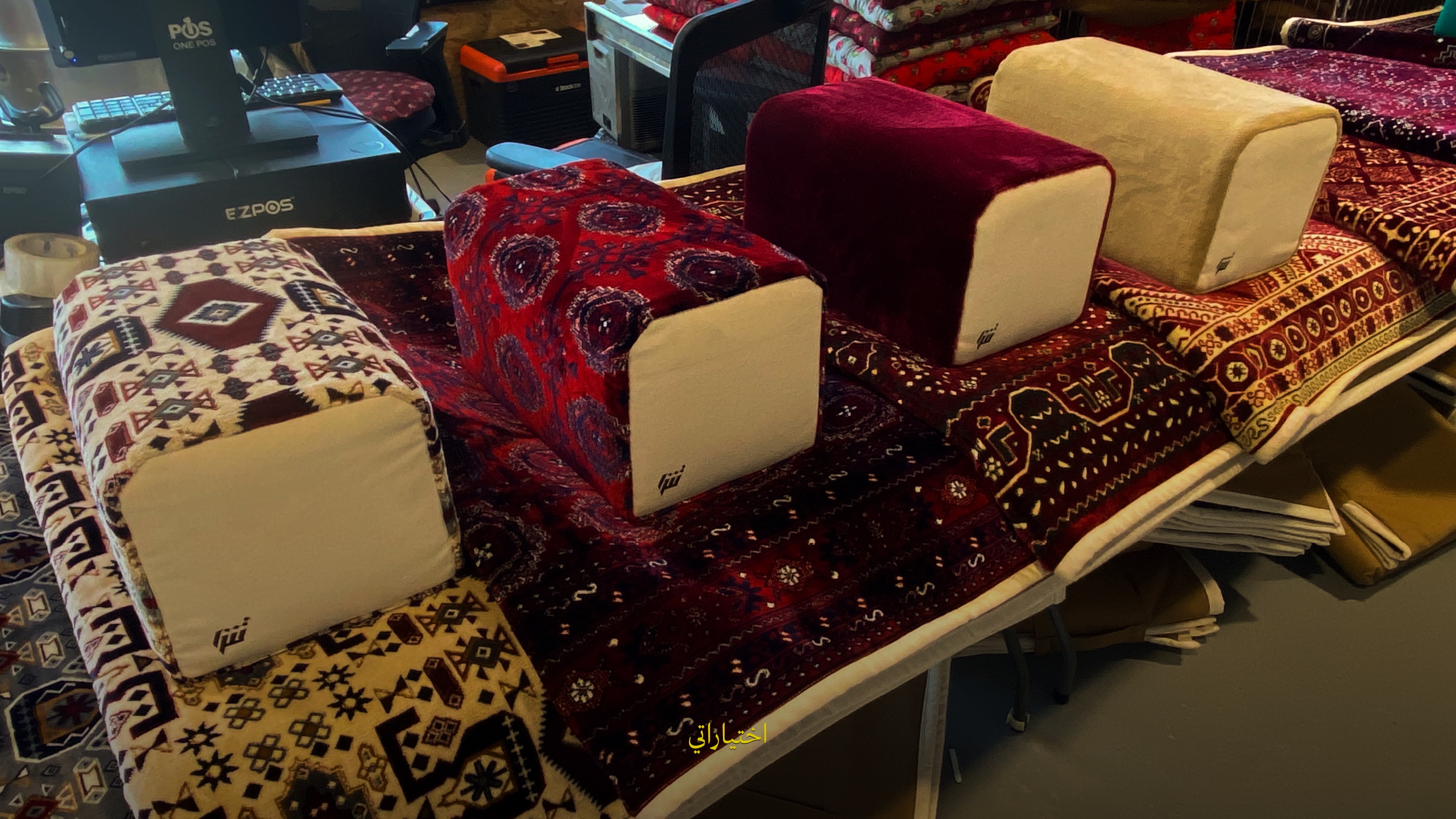 أول ما تدخل المحل بتلاحظ أنه وذف ومرتب. ما هو كبير، لكن فيه أشياء لِقطة. أول الأشياء اللي بتلاحظها لما تدخل على يسارك هو المدّات والمراكي عندهم، اللي تتميز بجودتها.
