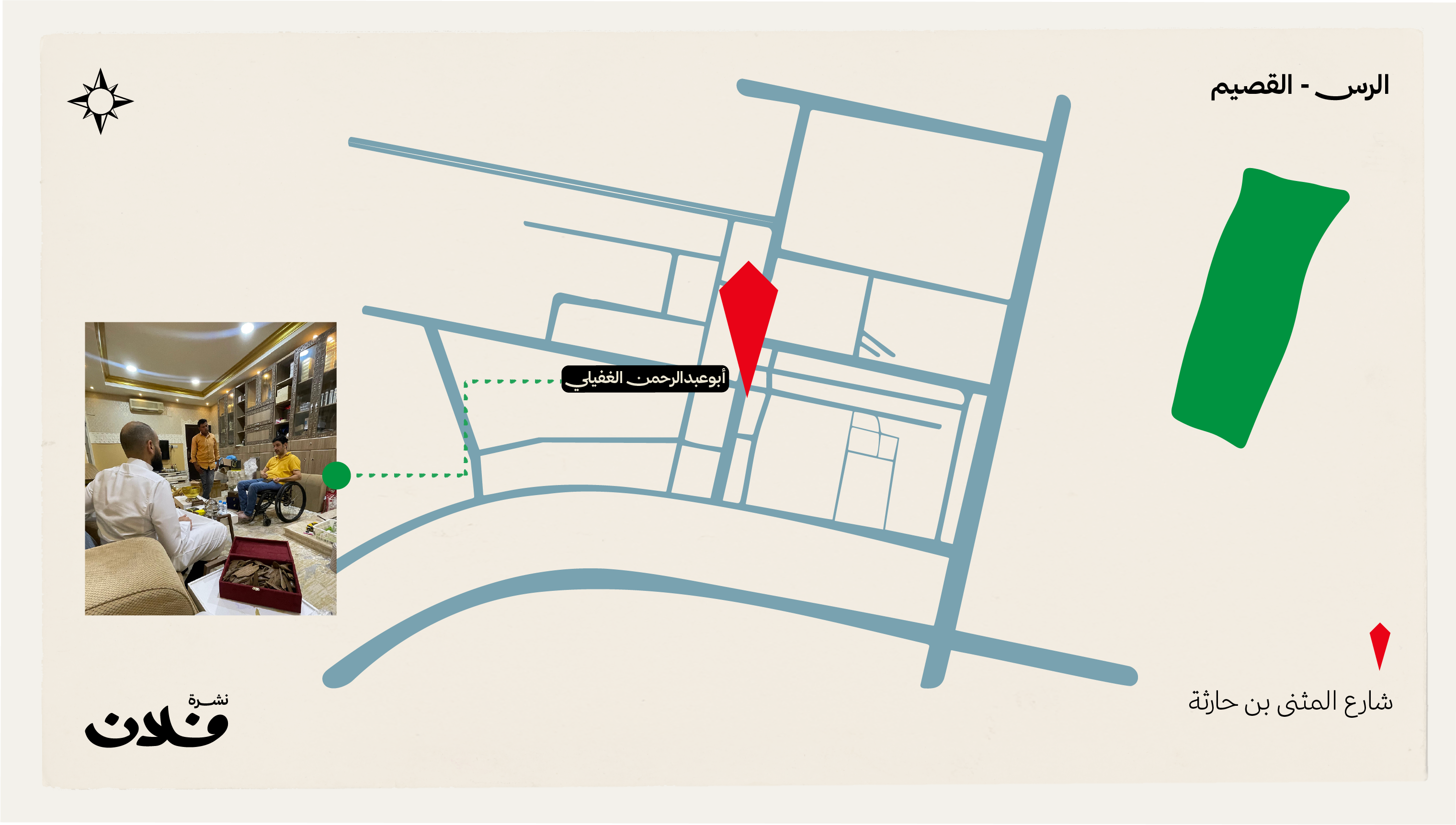 هذا أبو عبدالرحمن الغفيلي، راعي الطيب والعود بالرس. هو اللي جالس على الكرسي، وقائم على تجارته بمعاونة أهله. يعرفونه أهل العود والطيب بالرس بالنوادر والشيء الناهي. أقول: ترى الشتاء أقبل، وريحة العود لها طربة بالراس.