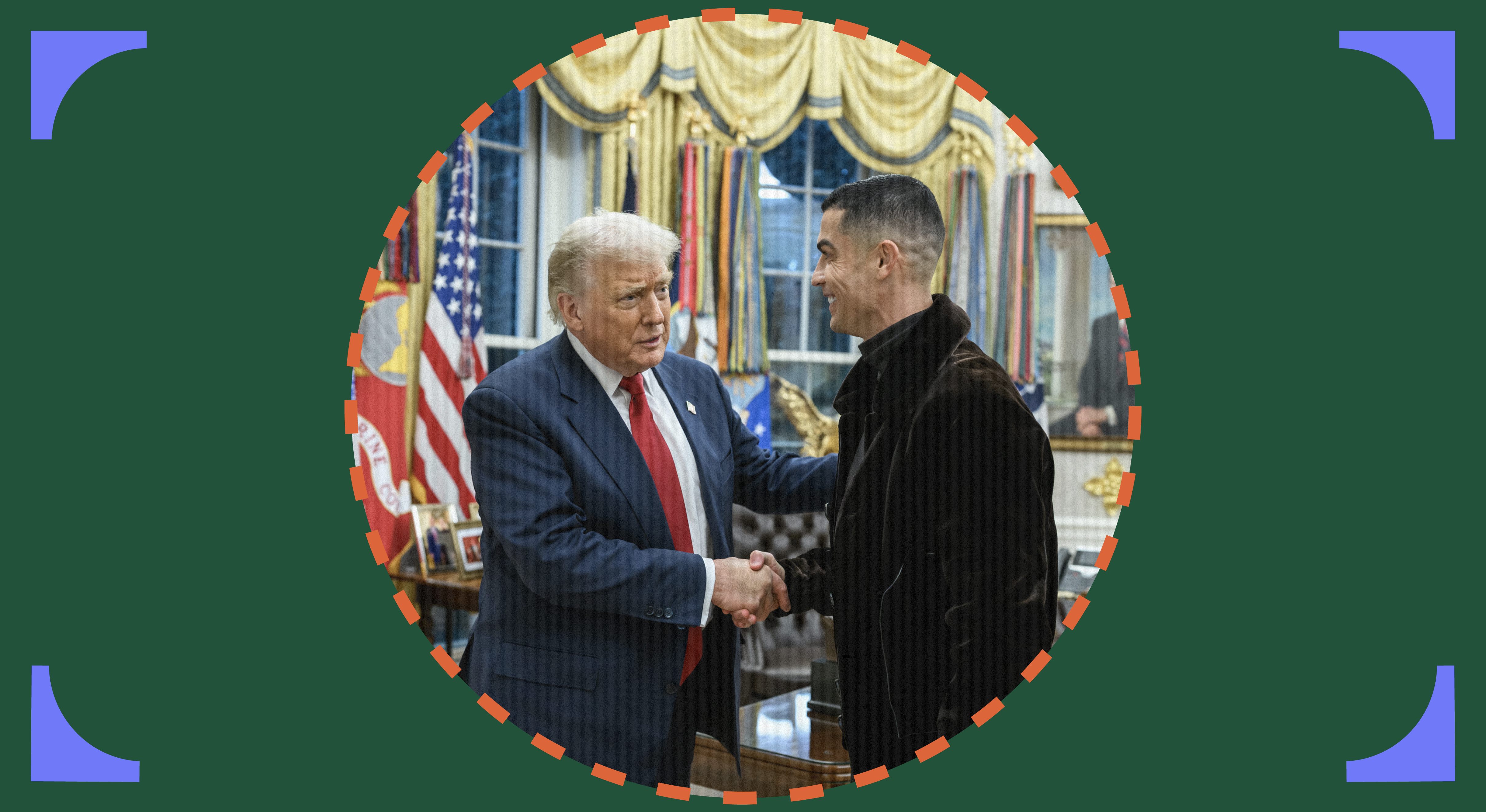 في مقابلة مع بيرس مورقان قبل نحو شهر من الآن، تحدث رونالدو بصراحة عن رغبته في لقاء الرئيس الأمريكي ترمب، قائلًا: «رئيس الولايات المتحدة يمثل ثقلًا كبيرًا، وهو أحد القادرين على تغيير العالم. وإذا استطعنا التعاون من أجل السلام فسيكون أمرًا عظيمًا. أتمنى الجلوس معه يومًا ما، والحديث بهدوء عن ذلك». حقق رونالدو ما يريد وجلس مع الرئيس.