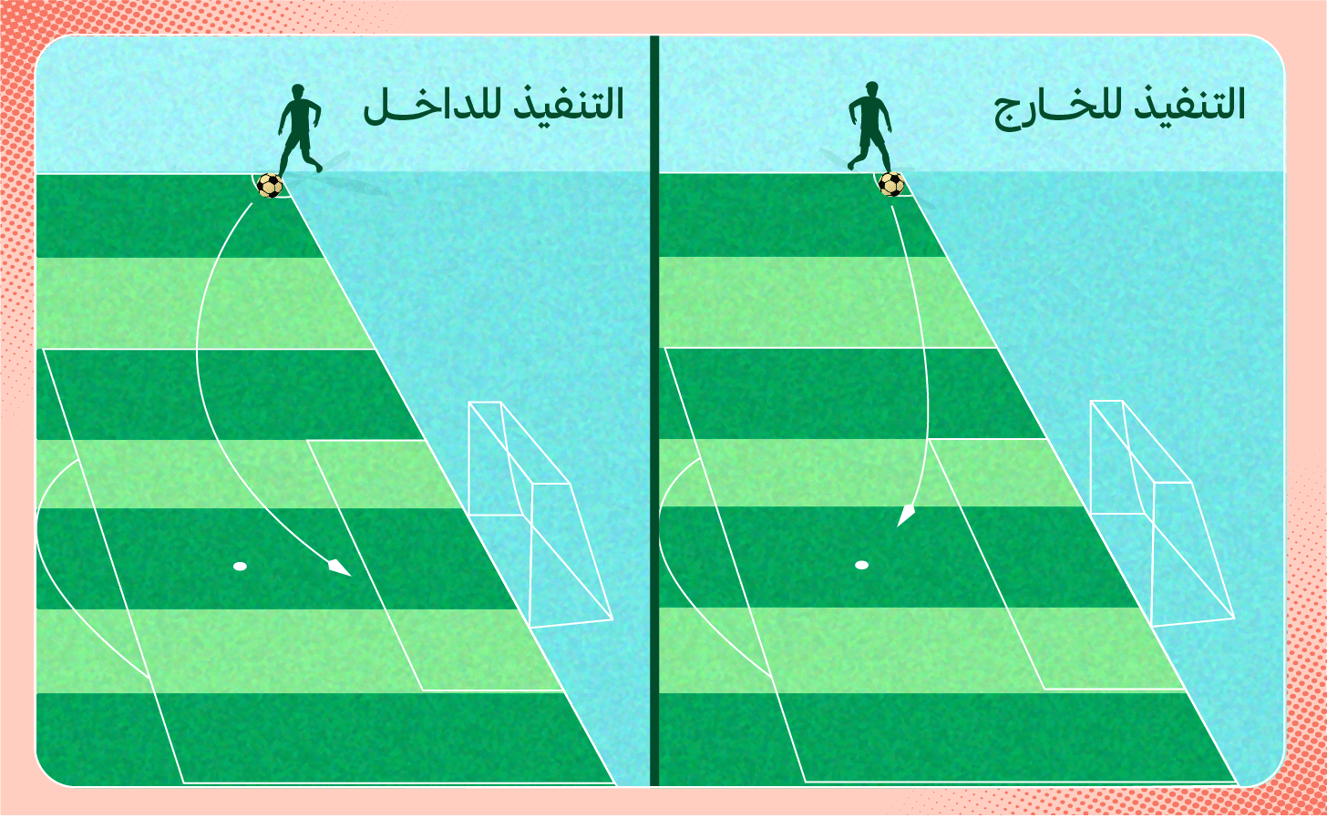 وبإمكانك من خلال الرسم البياني وبكل بسهولة مشاهدة ارتفاع نسبة الاعتماد على تنفيذ الكرات للداخل بشكلٍ متزايد، مقابل انخفاض واضح لتنفيذها نحو الخارج؛ مع ارتفاع أيضًا في تنفيذ الركنيات القصيرة التي تعتمد على التمرير لتحريك دفاع الخصم ومن ثم لعب الكرة العرضية.
