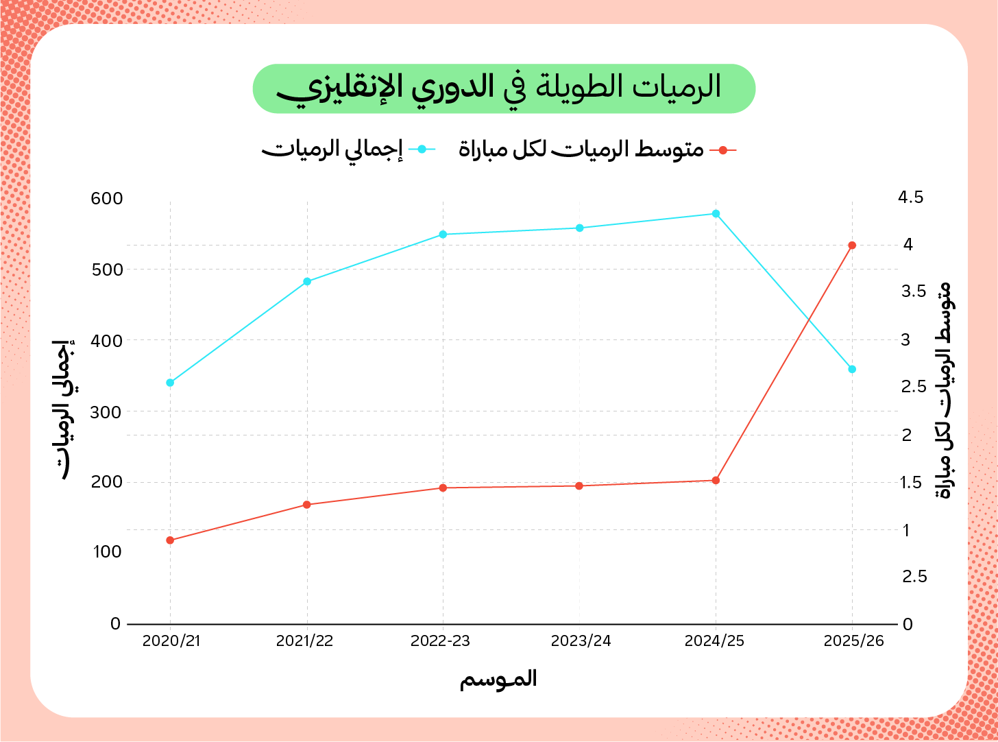 يمكننا -من خلال الرسم أعلاه- ملاحظة هذا الارتفاع غير المسبوق. ومع عودة رميات التماس الطويلة مجدّدًا بعد غياب طويل، بات لدى الفرق سلاح «جديد/قديم» يجري استخدامه.