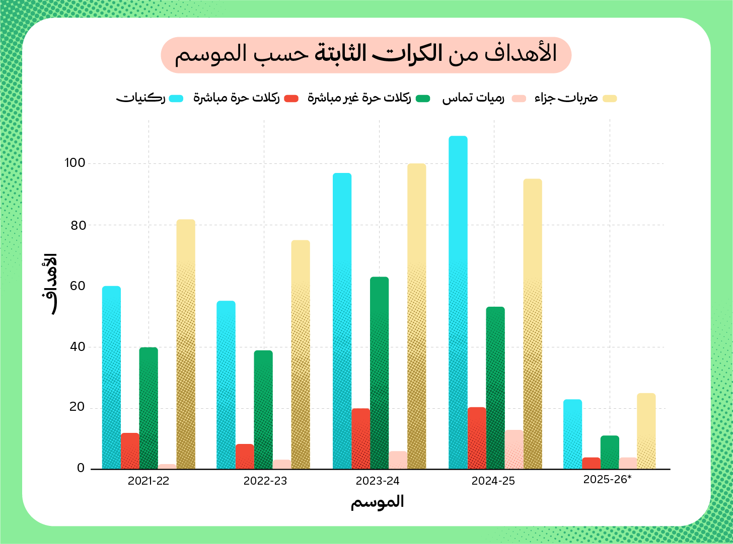 تطوُّر الكرات الثابتة في الدوري السعودي في السنوات الخمس الأخيرة