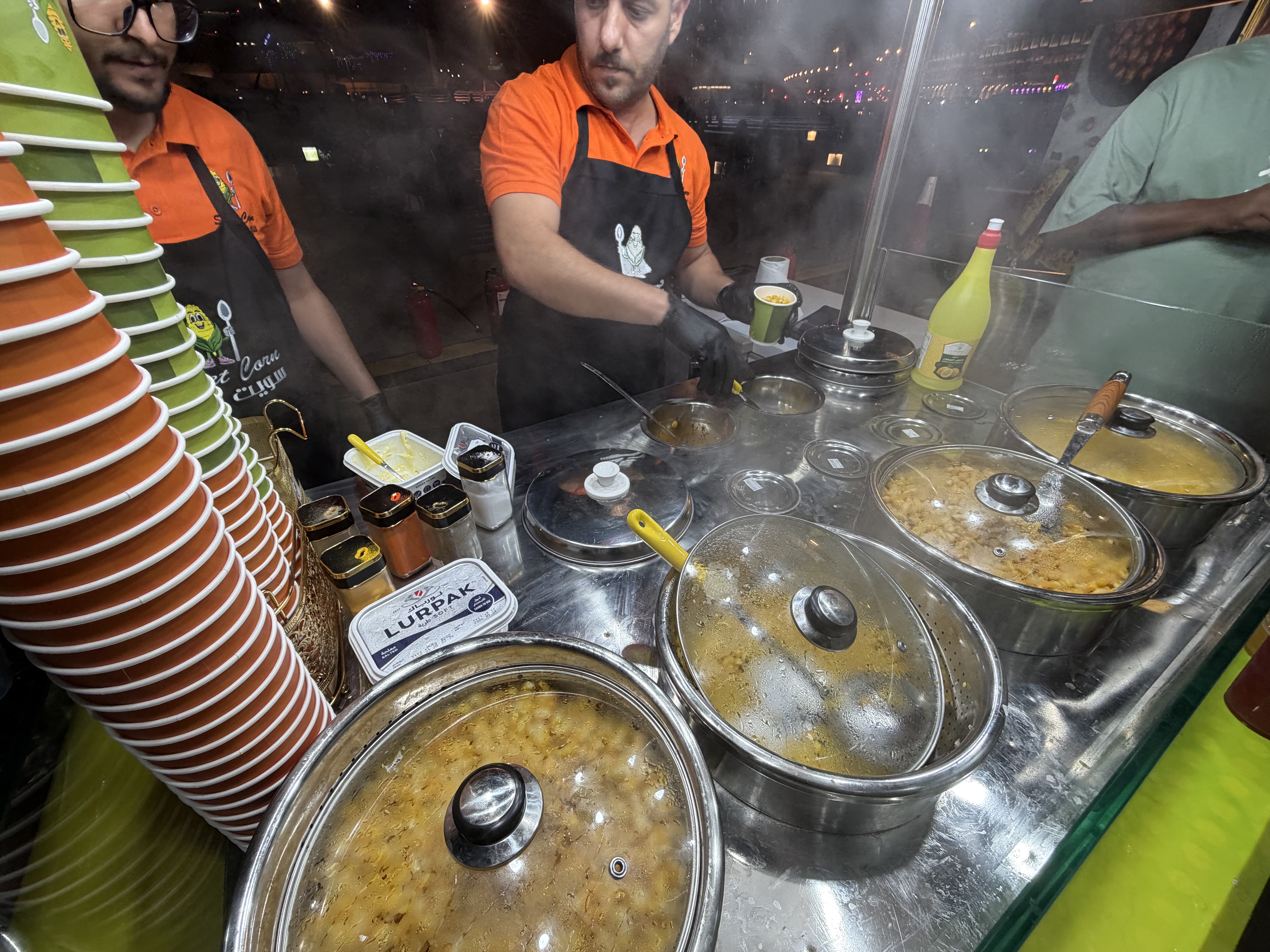 تحدثت مع صاحب العربة، وهو من تونس ويشرف على البيع بنفسه، وشرح لي كيف يرتفع الطلب على المأكولات والمشروبات خلال البطولات المجمعة هنا في سوق واقف، بعكس الأيام العادية، قائلًا: «في الأيام العادية أسلق ثلاثة أكياس ذرة، مع بداية هذا الأسبوع صرت أسلق باليوم 25 كيسًا ولا يزال الطلب عاليًا.»
