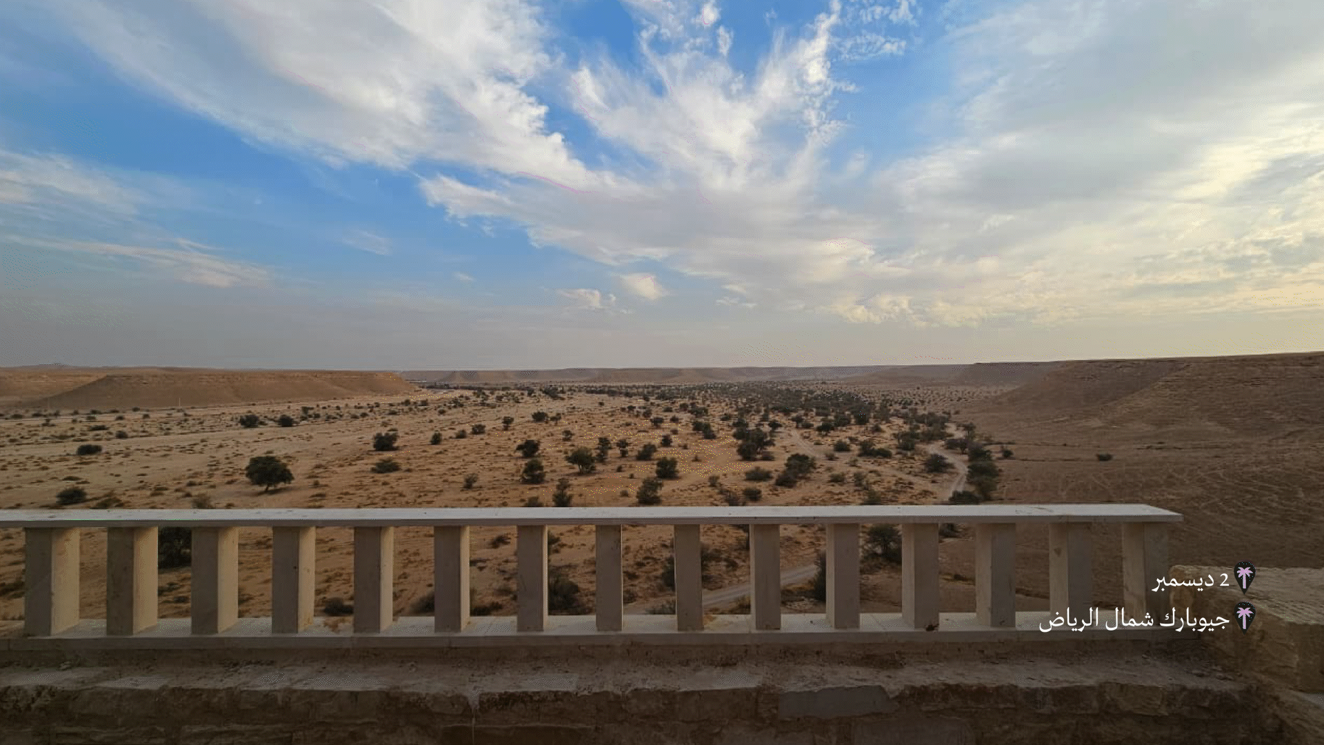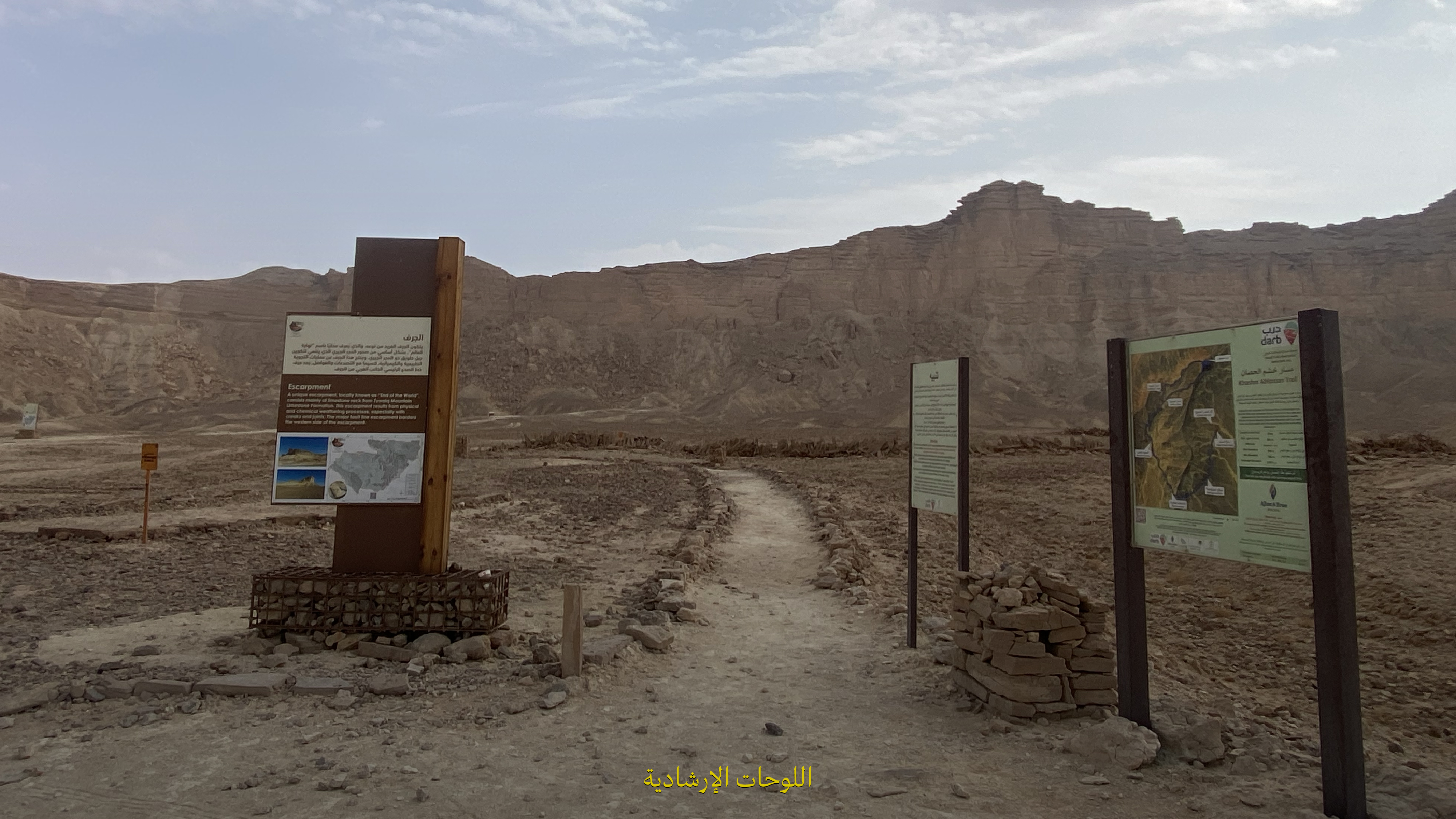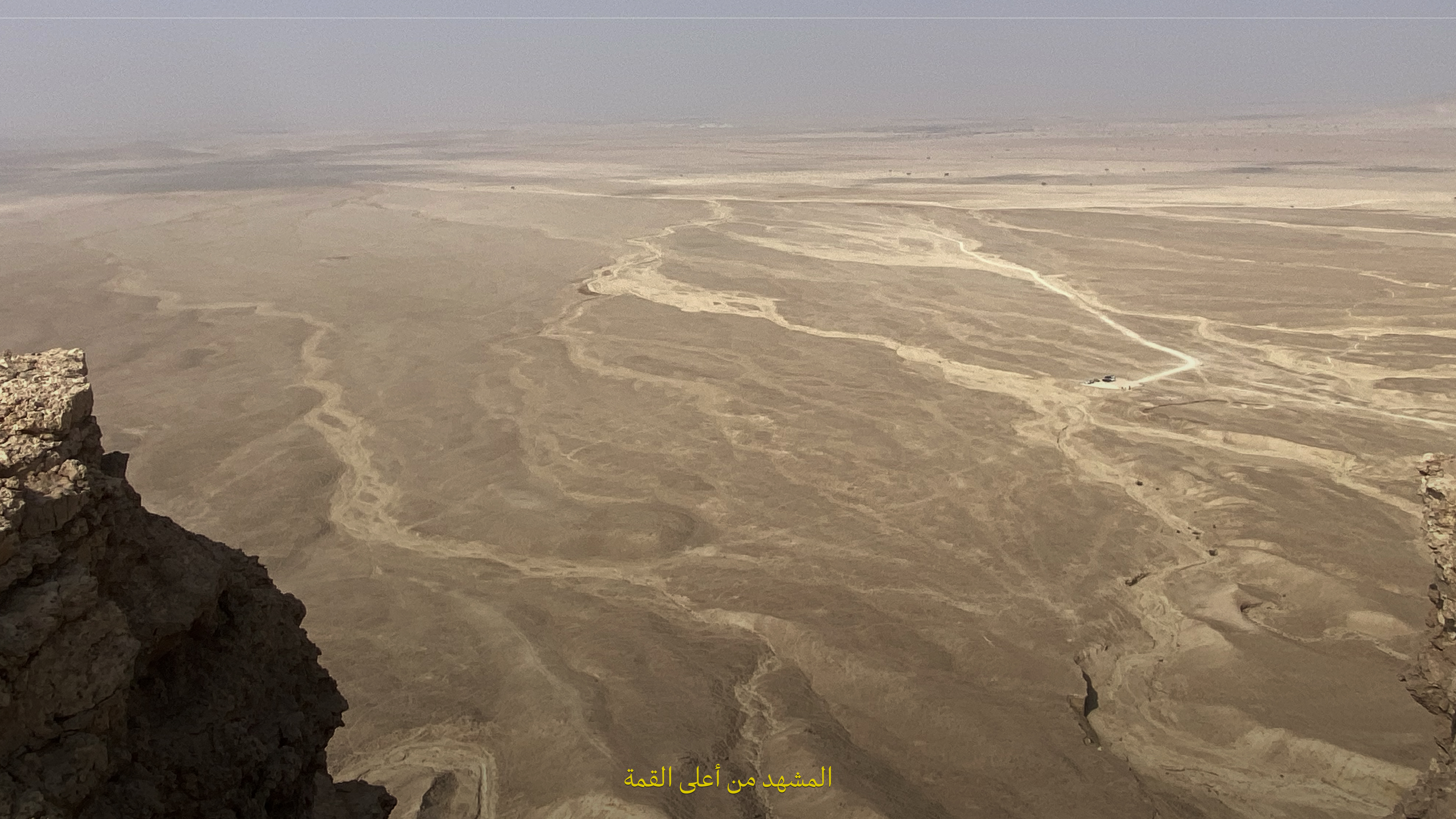 اللي يميزها في نهايته مطل ساحر على حواف جبل طويق، تقدر تتأمل منه الغروب على مد البصر. ⛰️