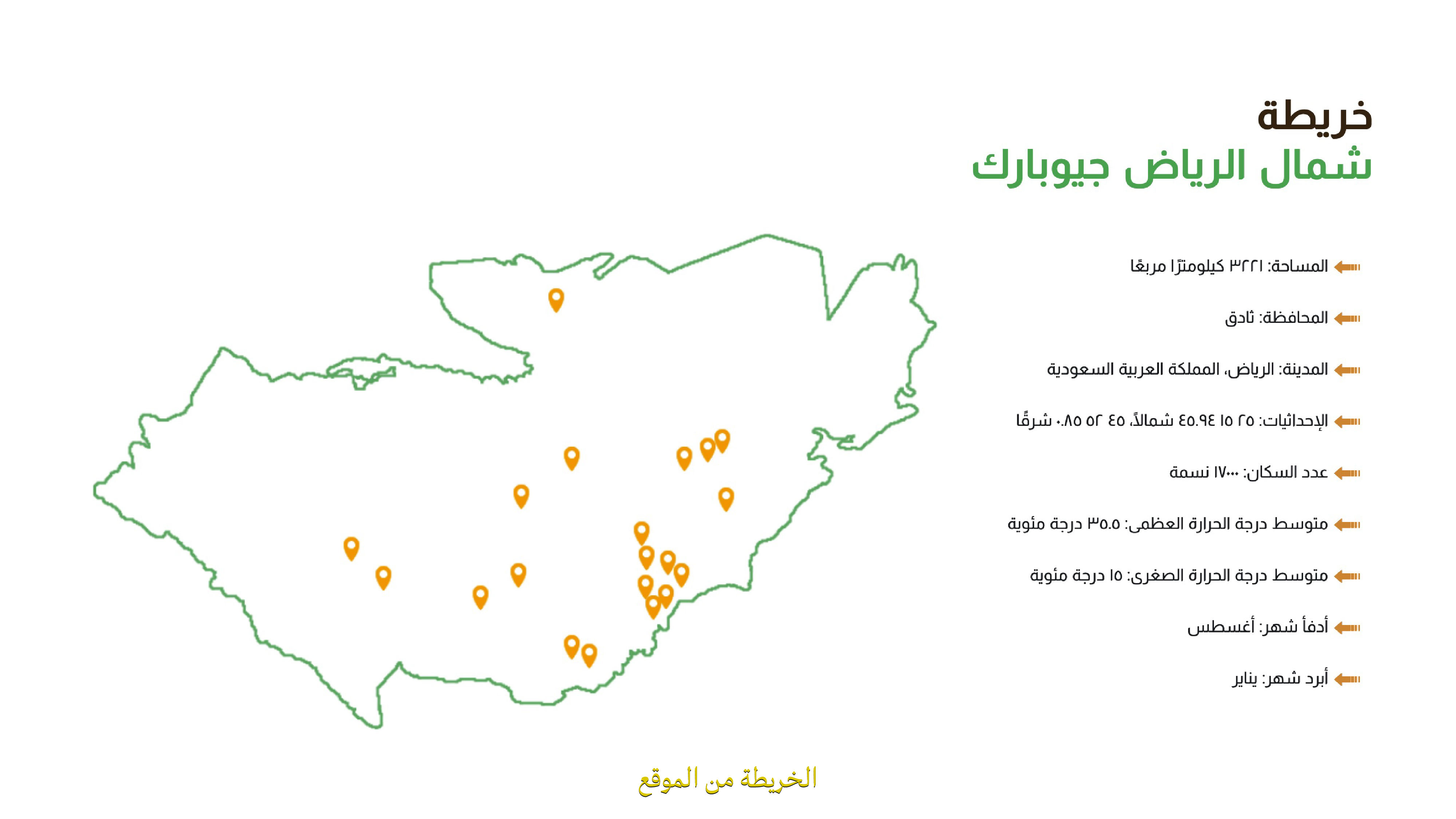 تمتد مساحة جيوبارك شمال الرياض 3,221 كم مربع. ويبعد حوالي 150 كم من وسط الرياض. ويقع في منطقة ثادق تحديدًا.📍