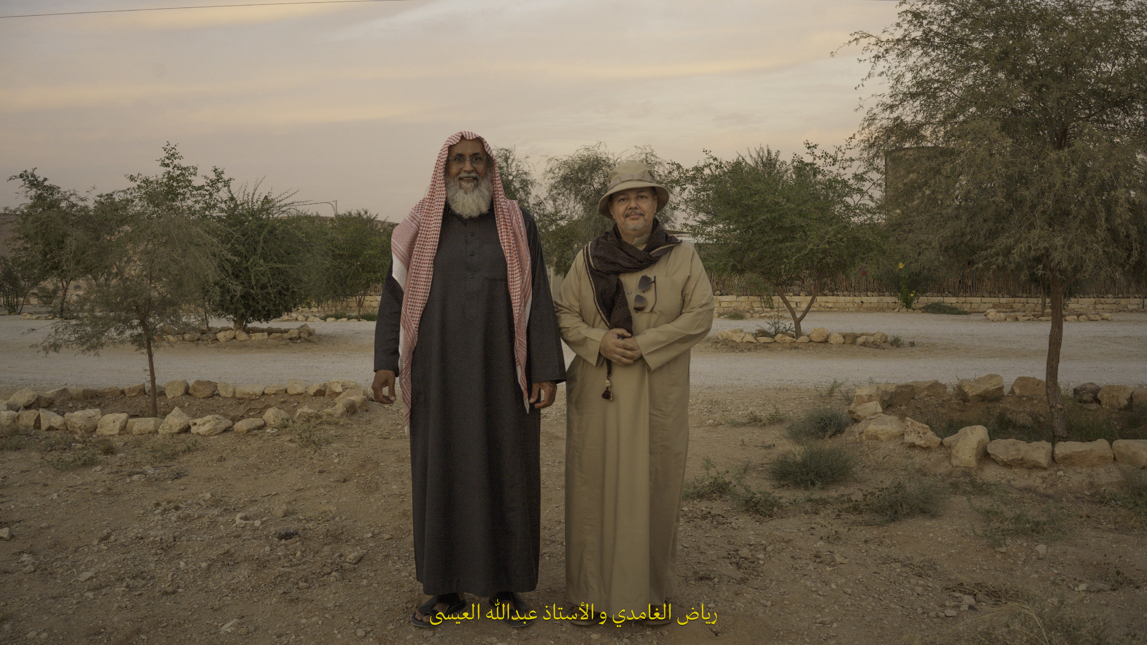 وهنا كان الرفيق، رياض الغامدي على اليمين، والأستاذ عبدالله العيسى. بعدما أخذنا جولة سريعة لبعض الأماكن القريبة، ودَّعت صاحبي، واخترت أبات في شعيب عبيثران وأسمتمع بأشجاره وطبيعته. وكانت ليلة هادية، أهيئ فيها نفسي لمغامرة بكرة؛ وهي صعود قمة جبل خشم الحصان اللي يقع ضمن نطاق الجيوبارك. 🧗
