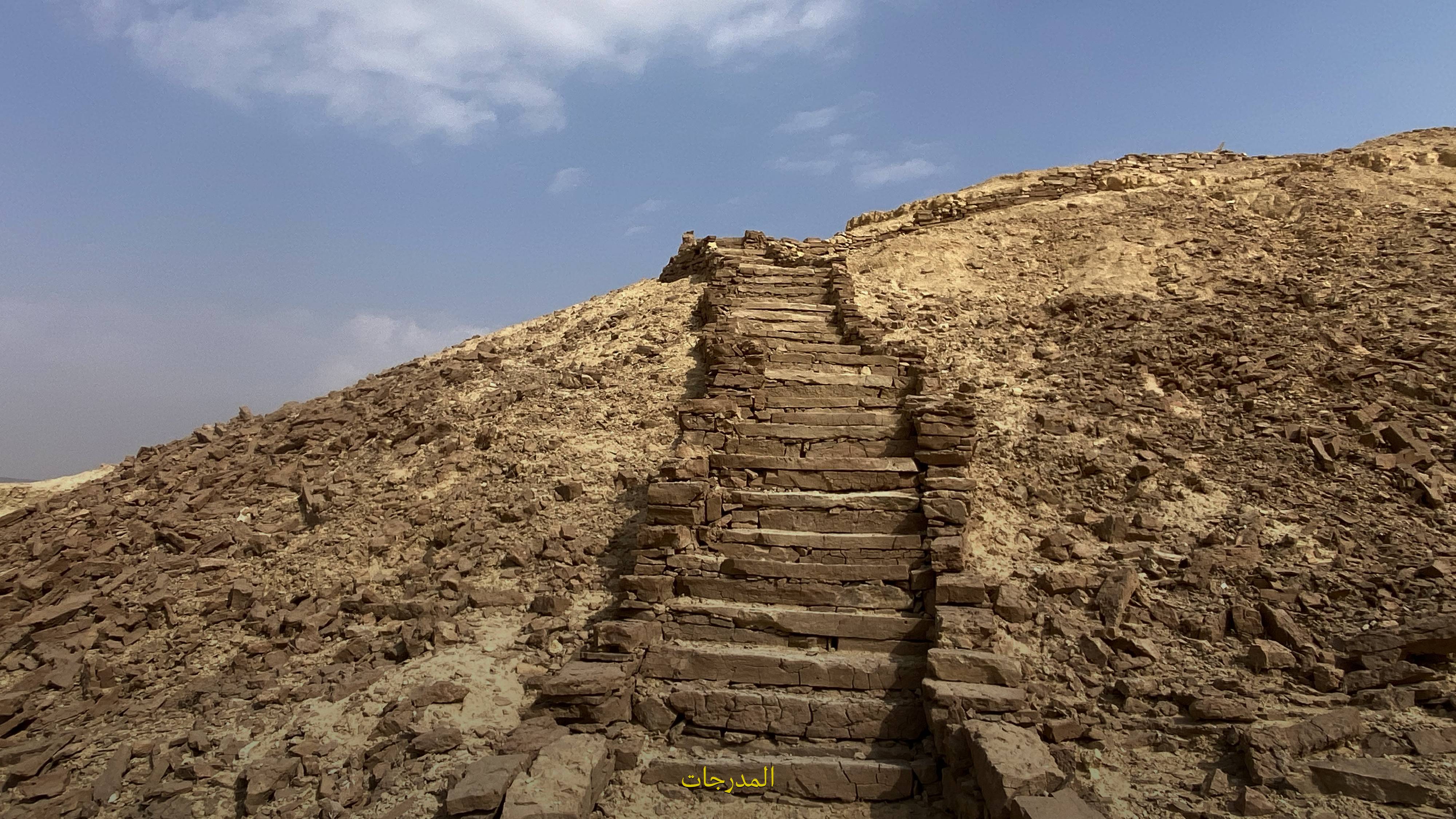 أول ما تبدأ، تلف يسار، وتمشي على مسار بشكل حذوة الحصان إلى أعلى قمَّة الجبل. وفيه ثلاثة أماكن تحتاج منك صعود مدرَّجات: