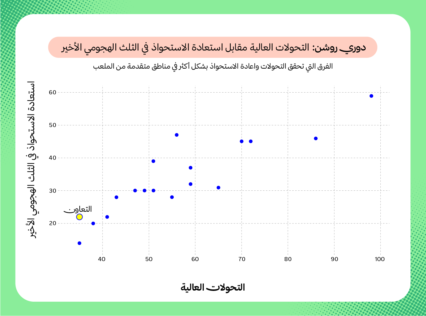 حتى الآن، التعاون هو ثالث أعلى الفرق خلقًا للفرص الكبرى بـ 35 فرصة، وأحد أعلى الفرق في معدل تحويل الفرص الكبرى إلى أهداف بنسبة 48.6%، وهو ما يوضّح قدرته الكبيرة على استغلال أكبر عدد ممكن من تلك الفرص.