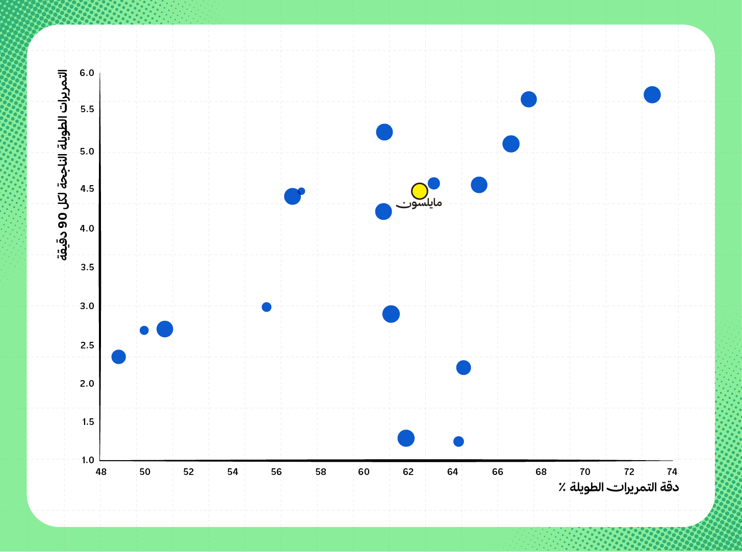 تظهر قيمة مايلسون عندما ننظر لمعدلات التمريرات الطويلة الصحيحة، إذ يمتلك الحارس البرازيلي معدل (4.47 تمريرة طويلة صحيحة) بنسبة نجاح 62.5%، تضعه ضمن الأفضل في الدوري.