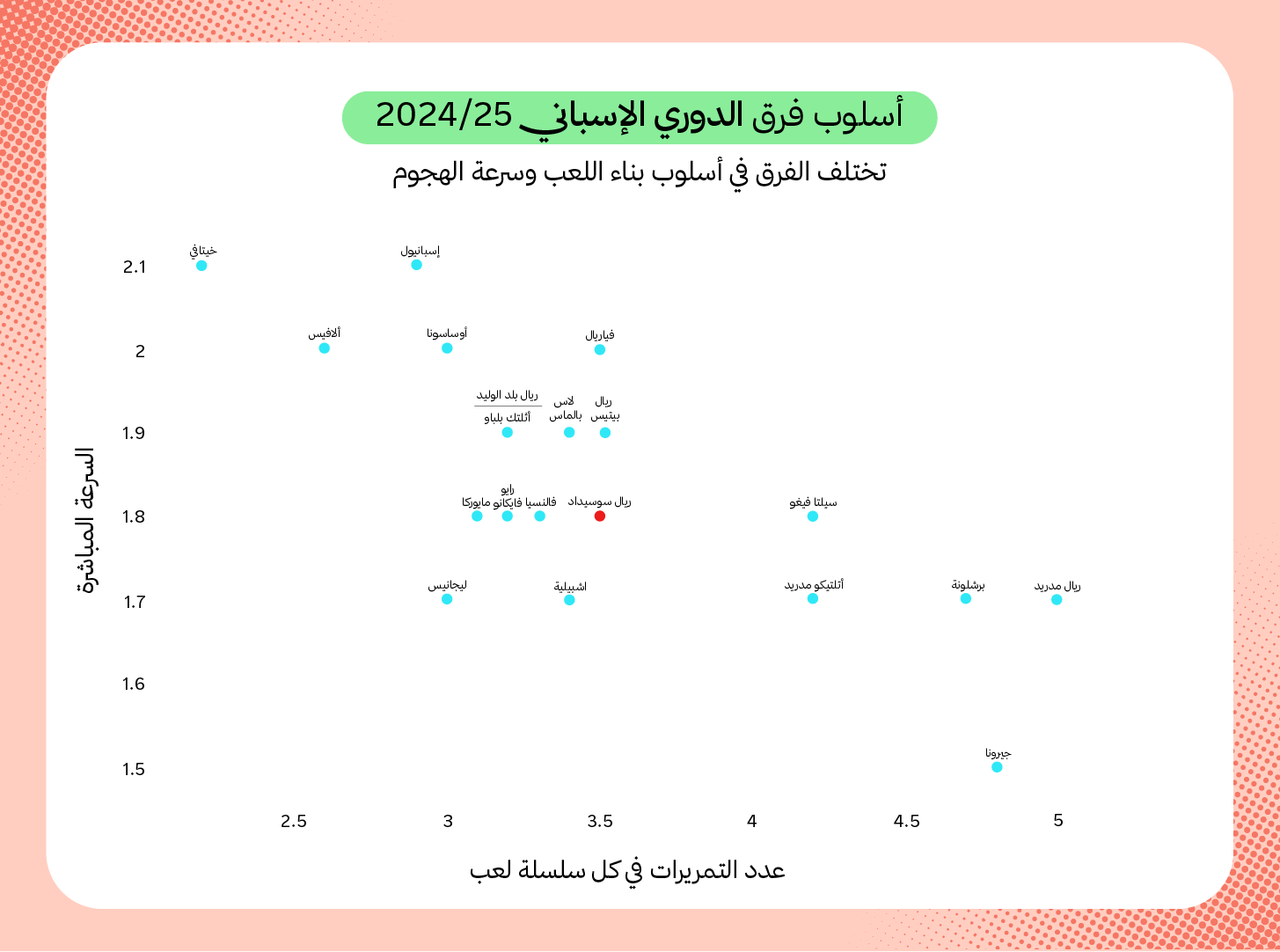 وفي الثلث الأخير من الملعب، كان سوسيداد مع ألقواسيل أحد أفضل الفرق في خلق الفرص خصوصًا عبر استغلال أنصاف المساحات.