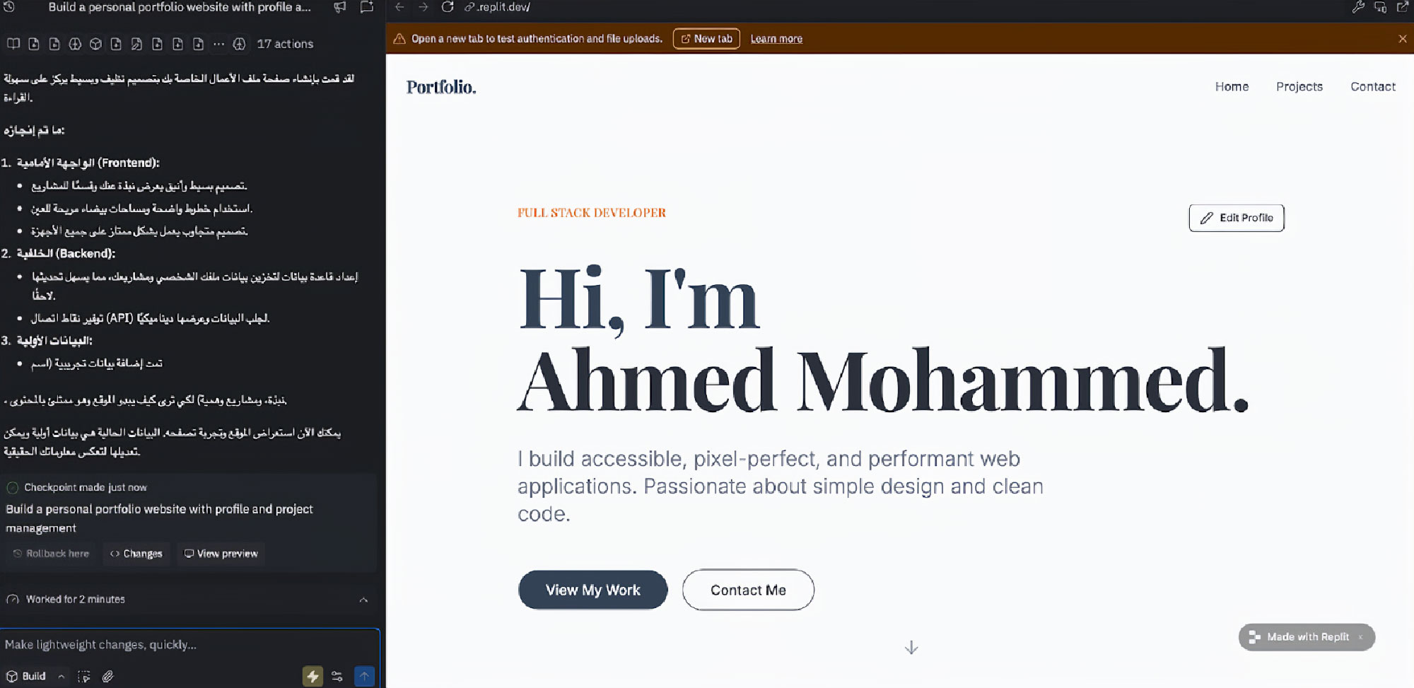 يساعدك (Replit) على البناء بسرعة، وتجربة أكثر من نسخة دون القلق من التفاصيل التقنية.