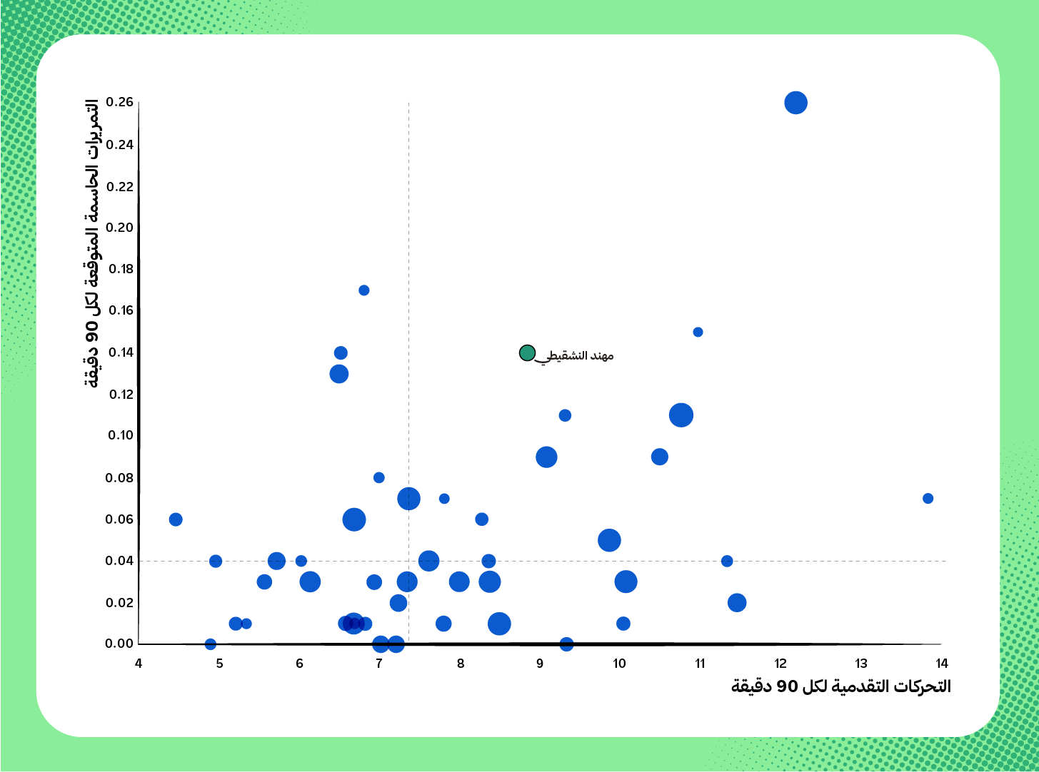 إن الشنقيطي أحد أعلى اللاعبين في خلق الفرص من اللعب المفتوح بـ 11 فرصةً، مع تمريرات متوقعة تقترب من (1.73).
