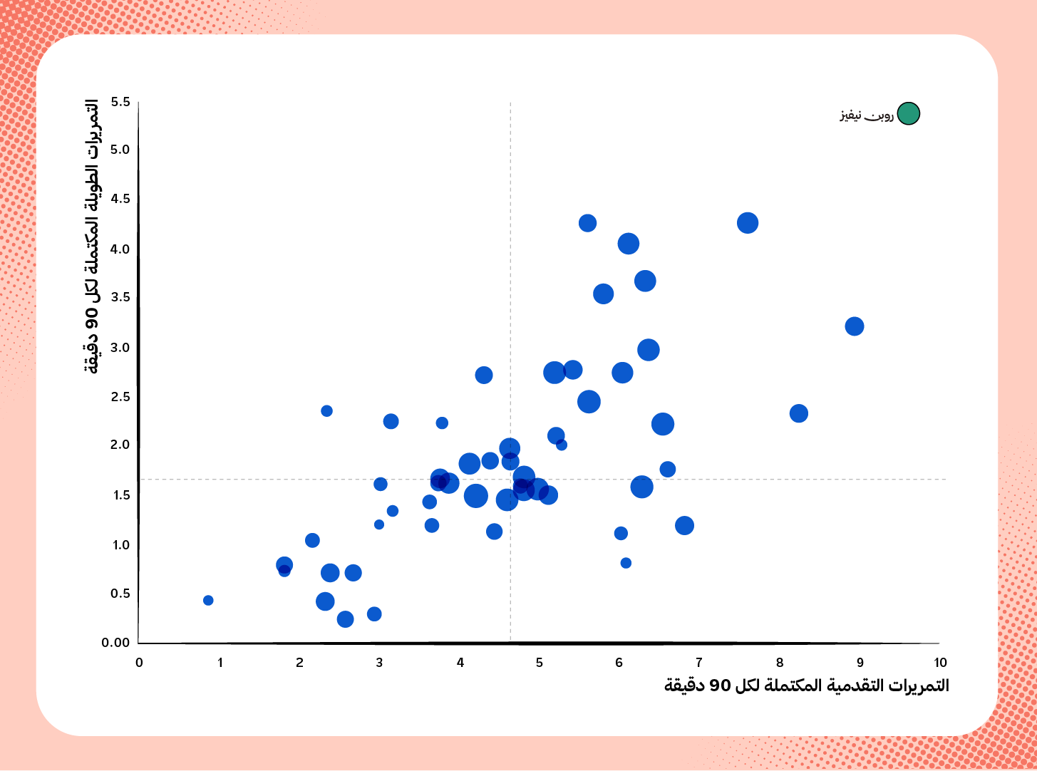 فيما يبرز اسم روبن نيفيز، كونه أحد أفضل لاعبي الوسط على الإطلاق في معدلات التمريرات الطويلة، والتمريرات التقدمية، إضافةً لمعدلات خلق الفرص.