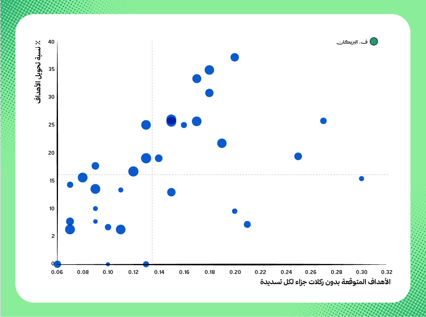 لكن، تُظهر رغم ذلك البيانات الخاصة بمعدل تحويل الأهداف والأهداف المتوقعة بدون احتساب ضربات الجزاء، تفوّق فراس البريكان على جميع المهاجمين السعوديين، رغم امتلاكه لهدفين فقط، فإن بيانات الأهداف المتوقعة لكل تسديدة تُظهر جانبًا مهمًا، وهو قدرته على اختيار مناطق تمركزه للتسديد بشكلٍ أفضل.