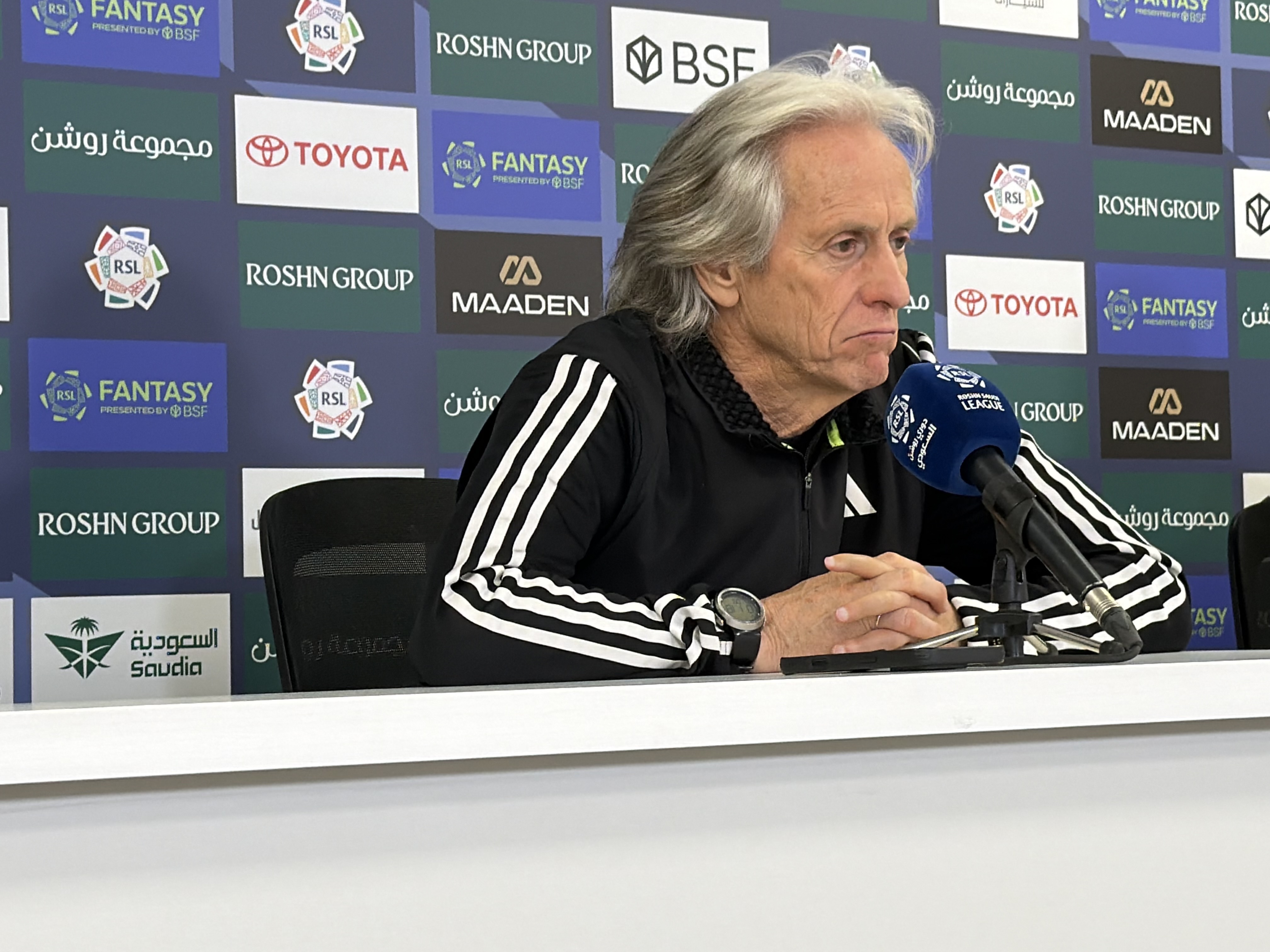 يبدأ التوتر في المؤتمر الصحفي، يطرح صحفي سؤال، ويقول: «هل أنت راضٍ عن الأداء أم عن النتيجة فقط؟ وهل يستطيع النصر مقارعة الهلال على اللقب؟»، يجيب خيسوس بشكل مطول: «عندما نفوز، من الطبيعي أن نرضى، لكنني سعيد جدًا أيضًا بتطور الفريق، ليس فقط بسبب الفوز، بل لأن الفريق يتطوّر مباراةً بعد أخرى. نحن الآن في صلب المنافسة على اللقب، وأصبحنا على بُعد نقطة واحدة من المتصدر. وهذا أمر لم يعتده النصر في السنوات الأخيرة.»