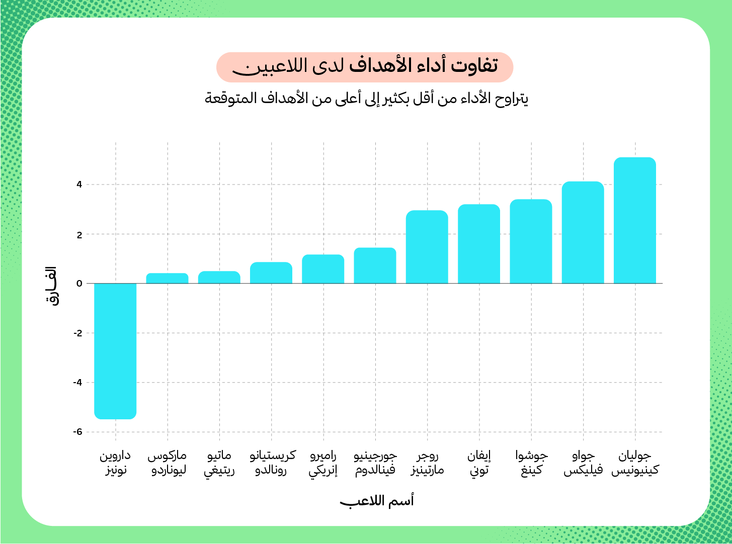 يعني هذا أن ليوناردو سجل أكثر من أهدافه المتوقعة بنحو (0.4 هدف)، في حين فشل نونيز في تسجيل (5.5 هدف متوقع).