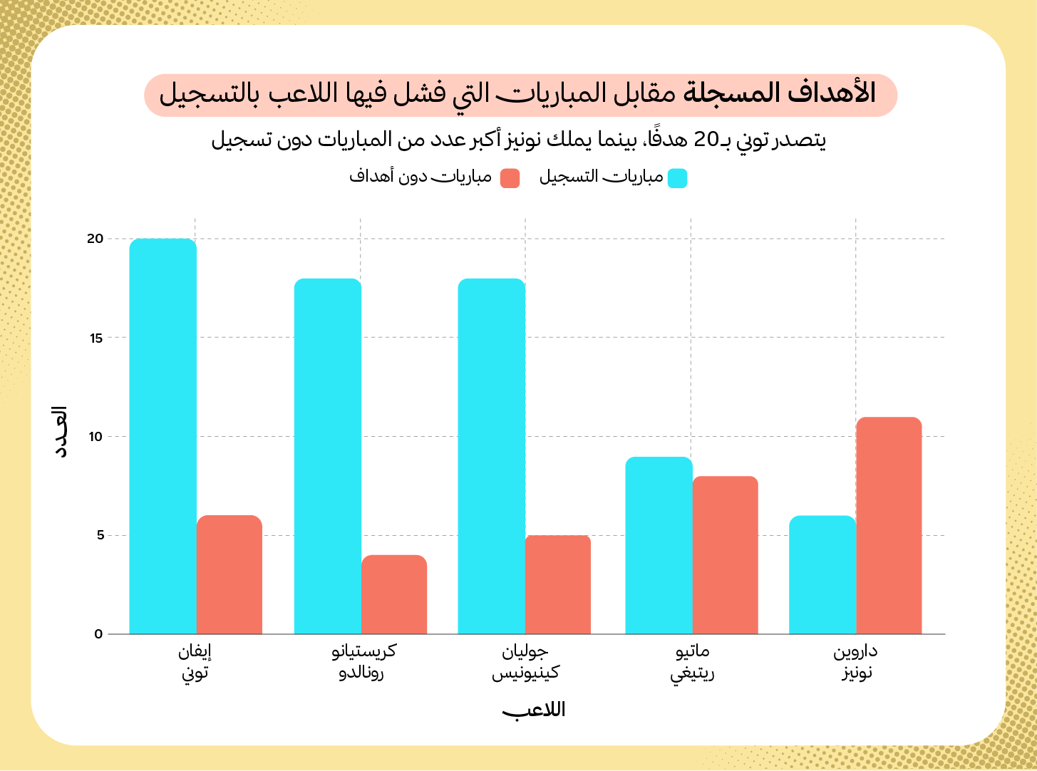 نشرة أسبوعية تجيب عن الأسئلة الكروية بلغة الأرقام والإحصاءات، وتناقش قضايا تتجاوز أحداث الجولة، وتغوص في تفاصيل الفرق والمدربين. سؤال واحد في كل عدد، وإجابات تكشف الصورة الكاملة.