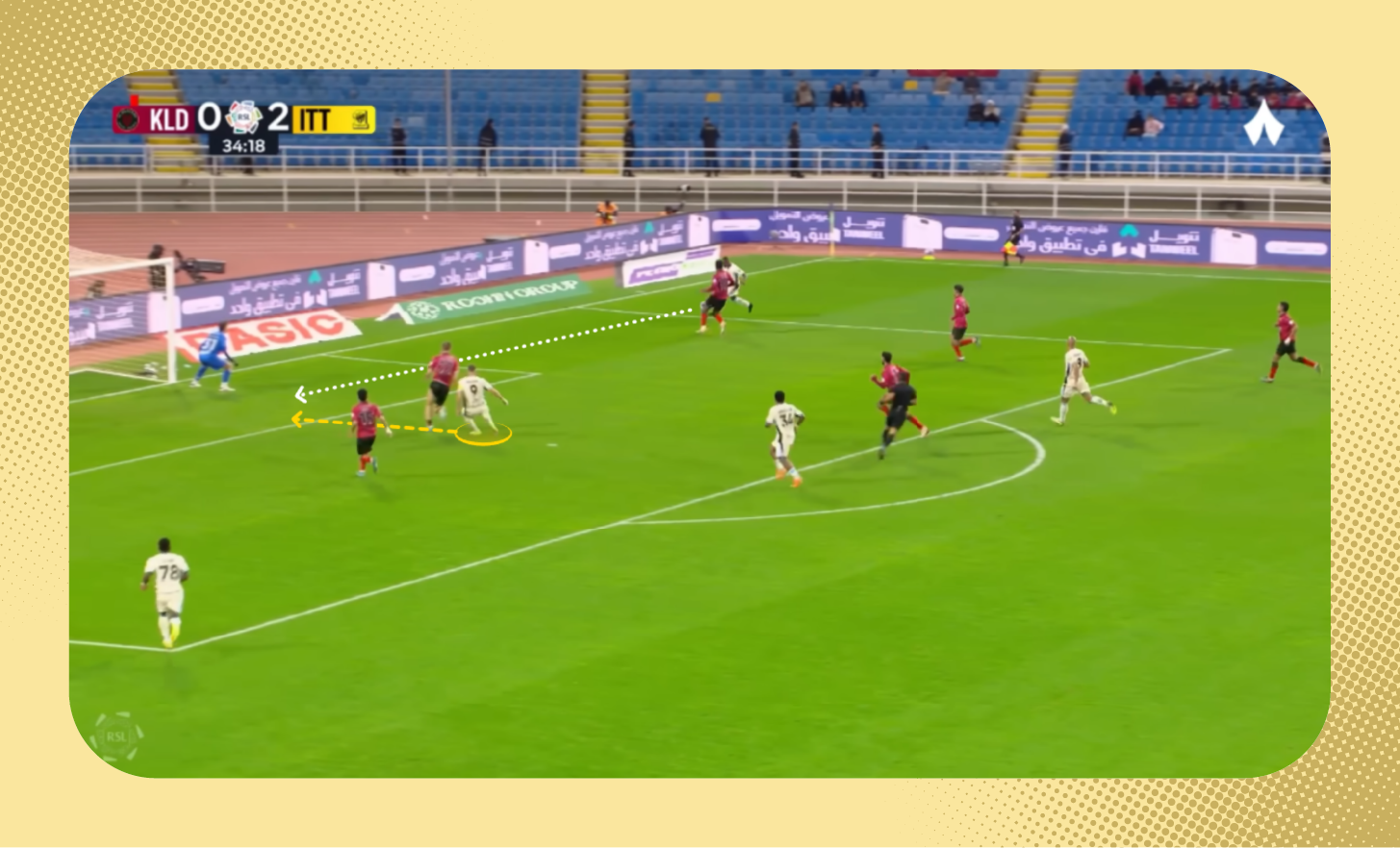 في هذه اللقطة من مباراة الاتفاق، مرّر بنزيما كرةً ذكيةً بمهارة عالية بكعبه إلى سافتش، كادت أن تثمر عن هدف للهلال «شاهد اللقطة بالكامل».