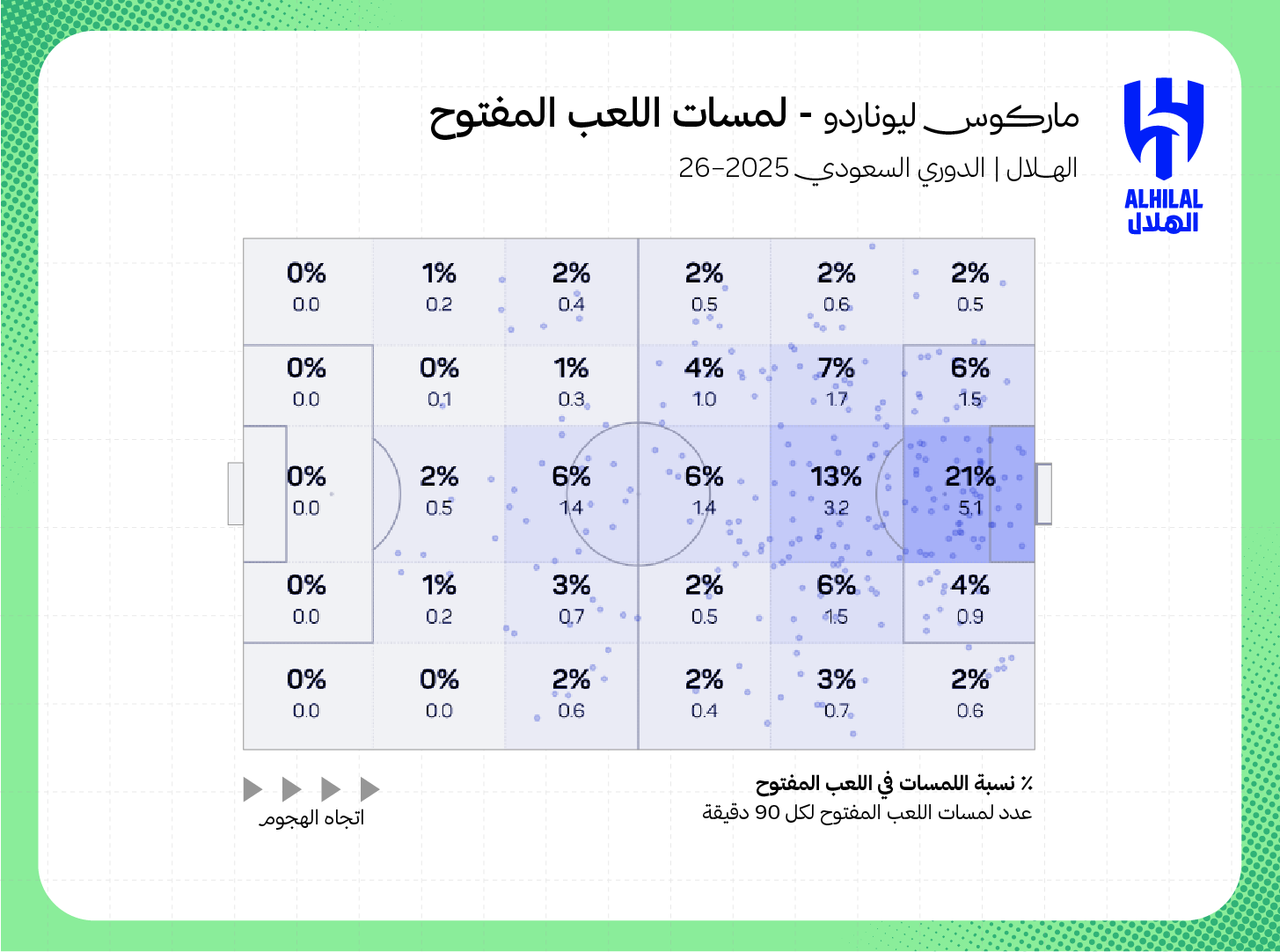حقيقة أن الهلال سجل 40% من أهدافه من الكرات الثابتة في الوقت الذي صنع فيه الفريق أكبر الفرص المحققة من اللعب المفتوح: