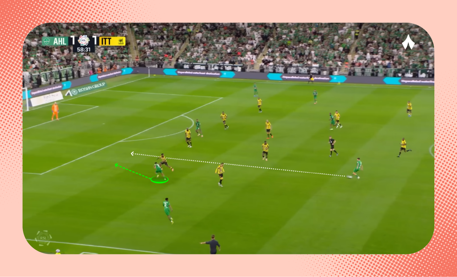 وقبل ركلة الجزاء التي حصل عليها التعاون كذلك، استغل فولقيني تحوّلًا سريعًا وتحرك في المساحة خلف الظهير الأيمن؛ ليكسب ركلة الجزاء «شاهد اللقطة».