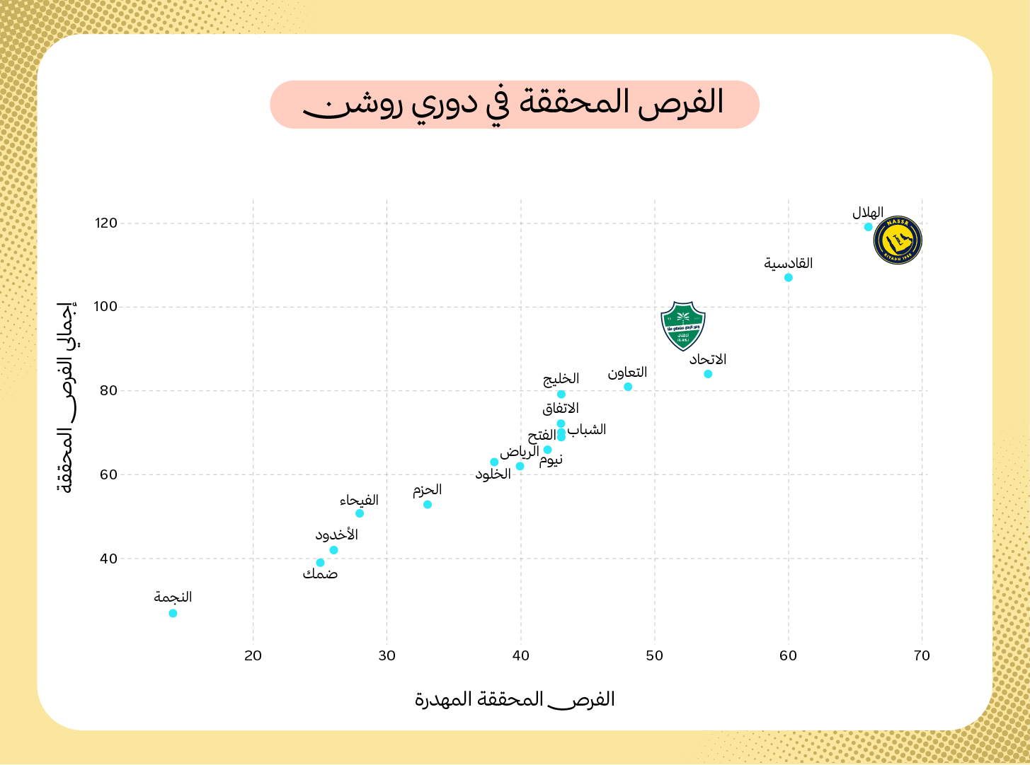 فالنصر ثاني أكثر الفرق خلقًا للفرص المحققة بعد الهلال، ولكنه في المقابل الأكثر إضاعةً لها.