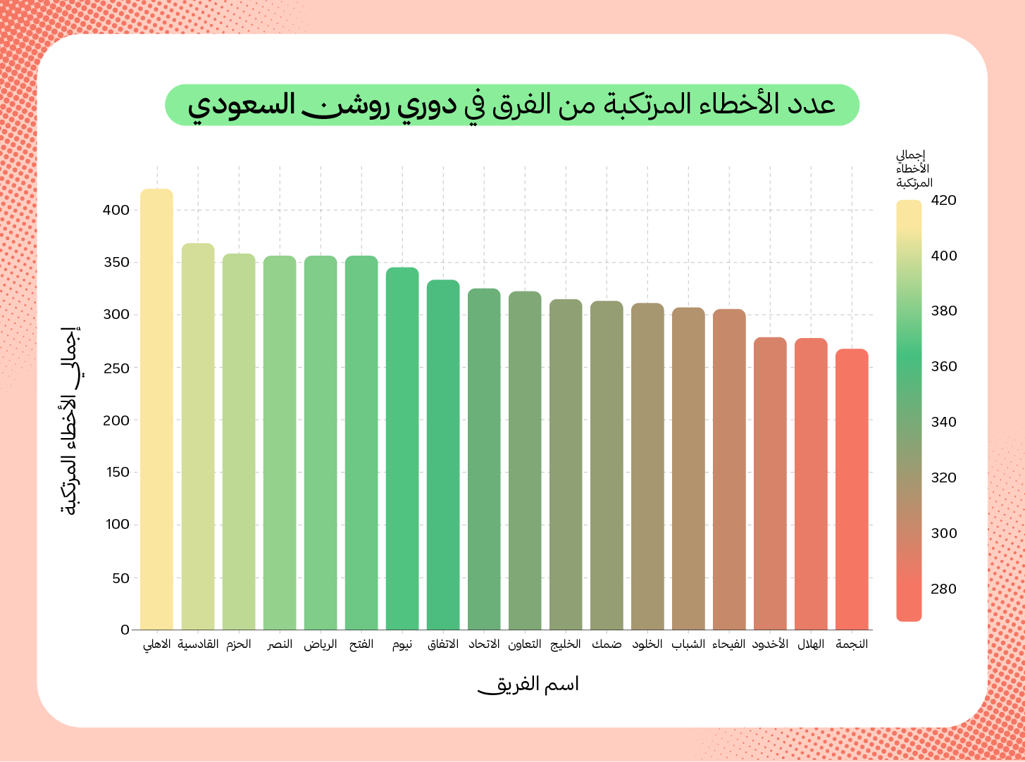 إن الأهلي أعلى فرق الدوري ارتكابًا للأخطاء هذا الموسم، وبقدر ما يبدو الأمر سيئًا، إلا أن الفريق يعتمد من خلال الأخطاء على محاولة كسر رتم الخصم بصورةٍ مستمرة. فالألماني يايسله لا يبحث مطلقًا عن تحوّل المباراة لمباراةٍ سريعة (هجمةٌ له وهجمةٌ عليه)، بل يحاول عبر ارتكاب لاعبيه هذه الأخطاء أن يكسر هذا الرتم بصورةٍ مستمرة.